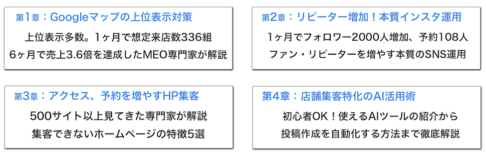 MEO対策、SNS集客、HP集客まで全て対策できるので集客部分は安心してお任せください。