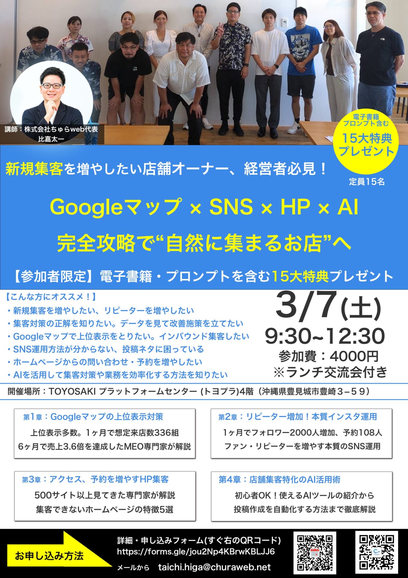 【沖縄の店舗経営者必見!】第20回 沖縄豊見城市web集客セミナー:MEO対策×SNS集客×HP集客×公式LINE×AI活用で完全攻略で”自然に集まるお店”へ【新規店舗集客・リピーター増加セミナー】