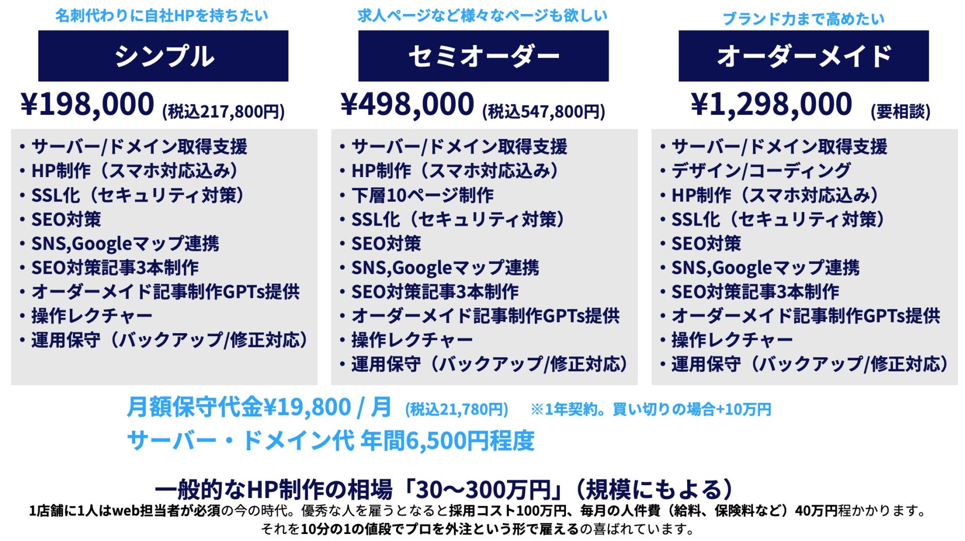 ※どちらのプランも、お客様自身でブログ更新ができます。(納品時に操作レクチャーあり)